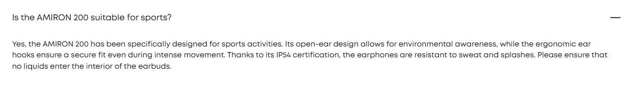 Engineered for durability, the AMIRON 200 features a robust IP54 rating for water and dust resistance, making it suitable for varied conditions. The lightweight, ergonomic ear hooks provide a comfortable fit, catering to prolonged usage without discomfort. Touch controls allow for easy management of audio and calls, promoting seamless transitions between music and dialogue.