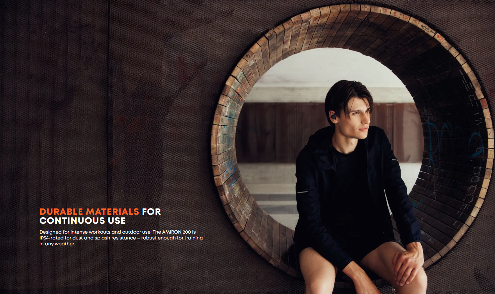 AMIRON 200, True Wireless Earphones, Open Ear Earphones, Ergonomic Ear Hooks, Waterproof Earphones, Long Battery Life Earphones, Beyerdynamic Earphones, Wireless Sports Earphones, Bluetooth Earphones, Environmental Awareness Earphones.