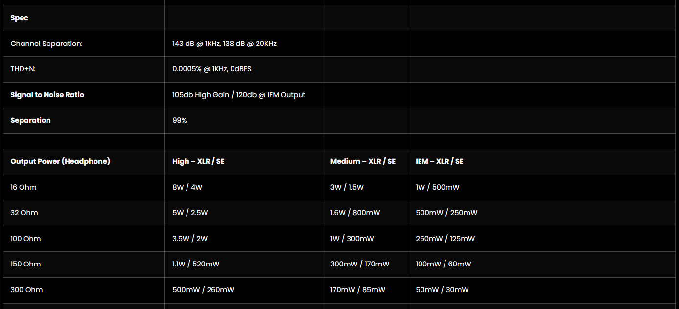 Output impedance (Headphone Amp): 0.5 Ohm