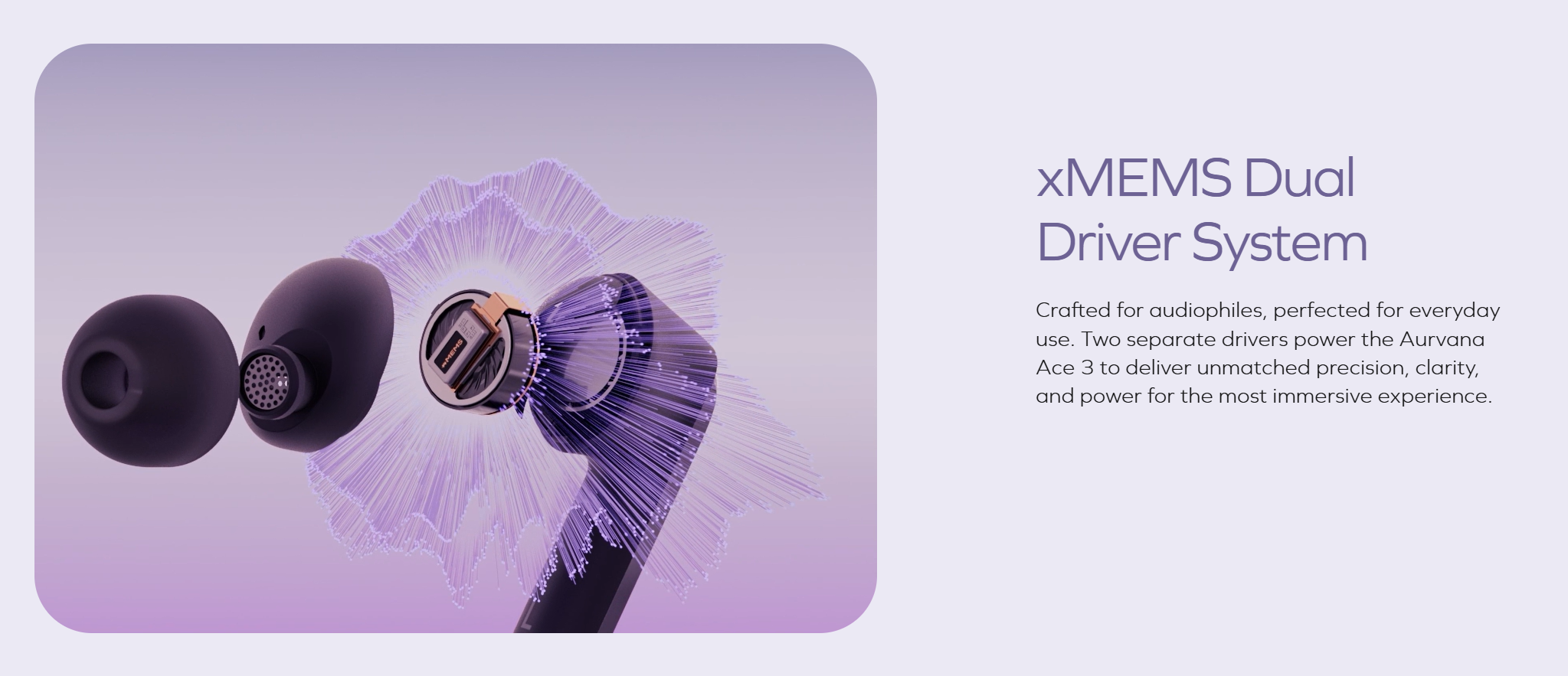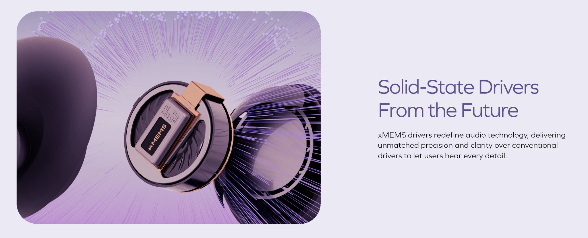 - Advanced xMEMS dual driver system for superior audio clarity and precision.