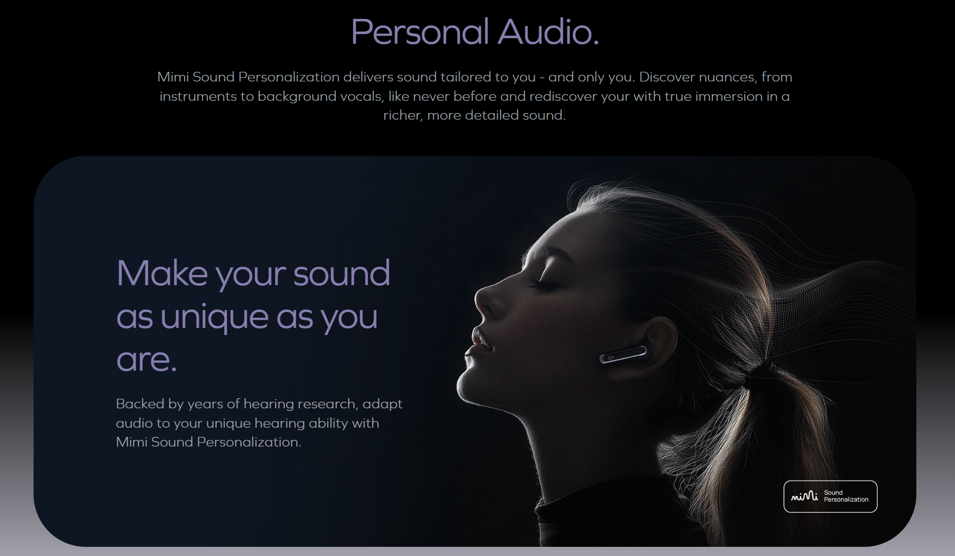 Experience unparalleled sound quality with personalized audio technology in a sleek, true wireless design.