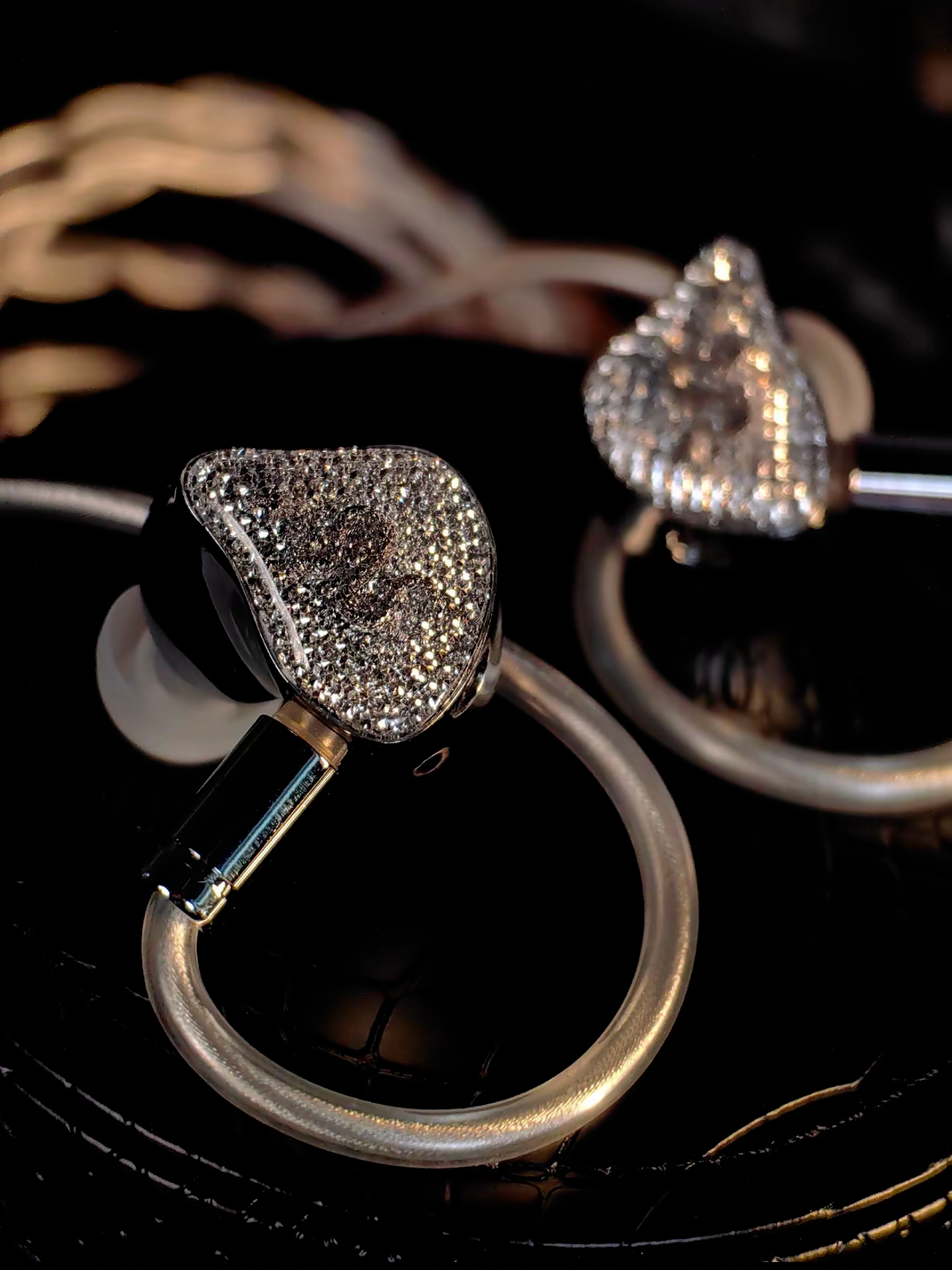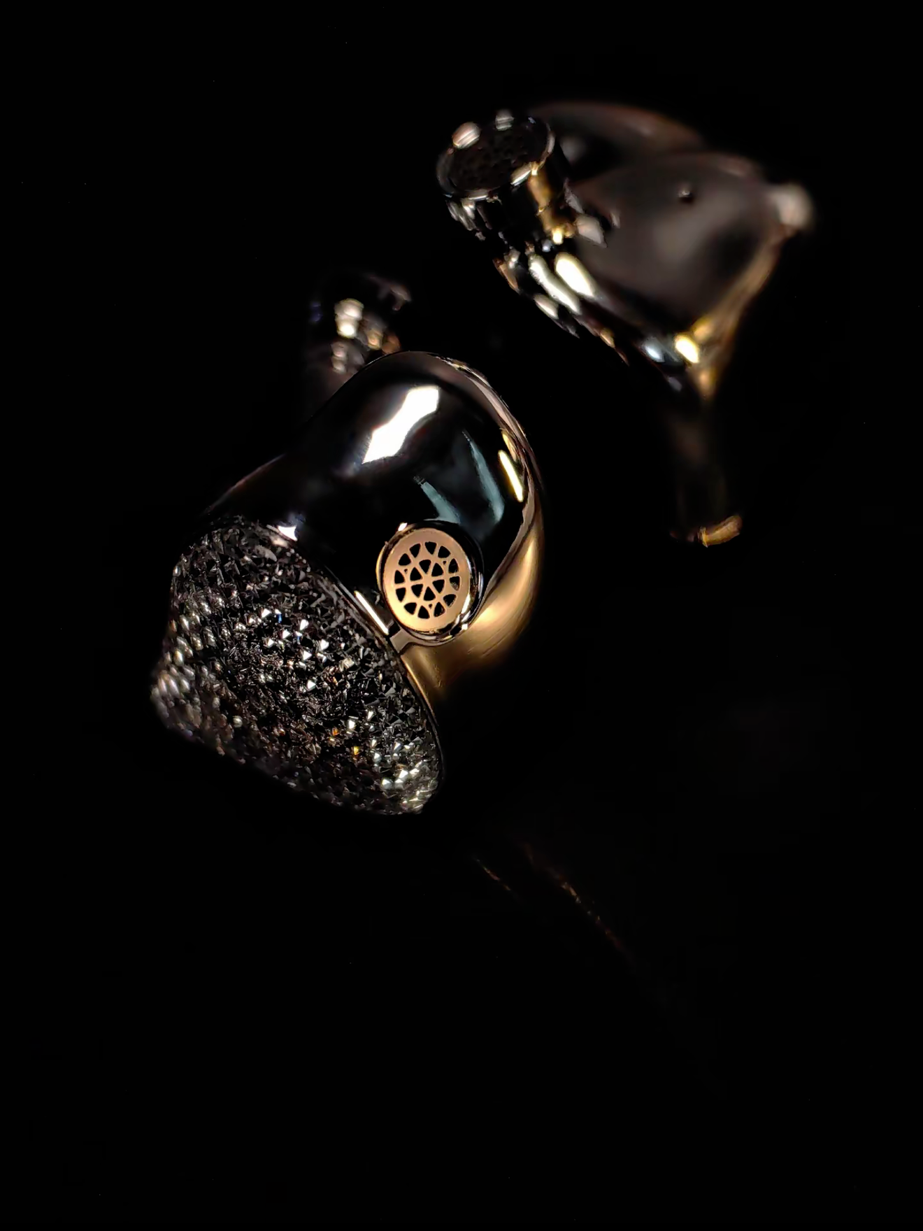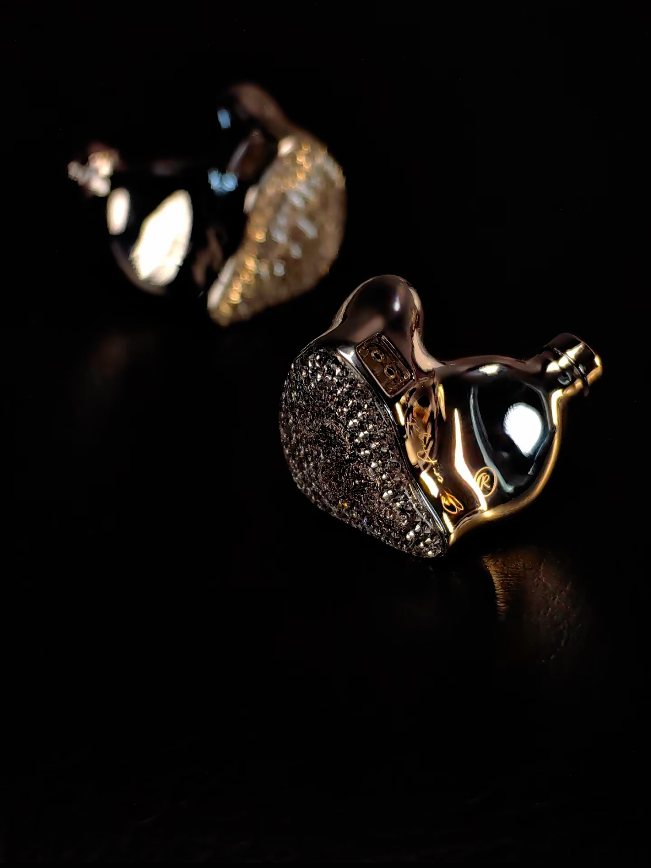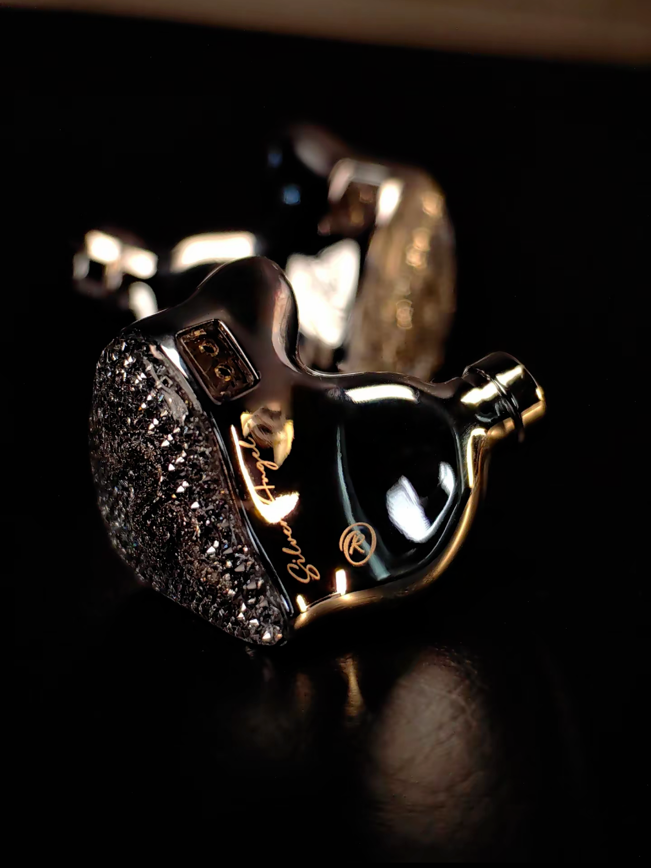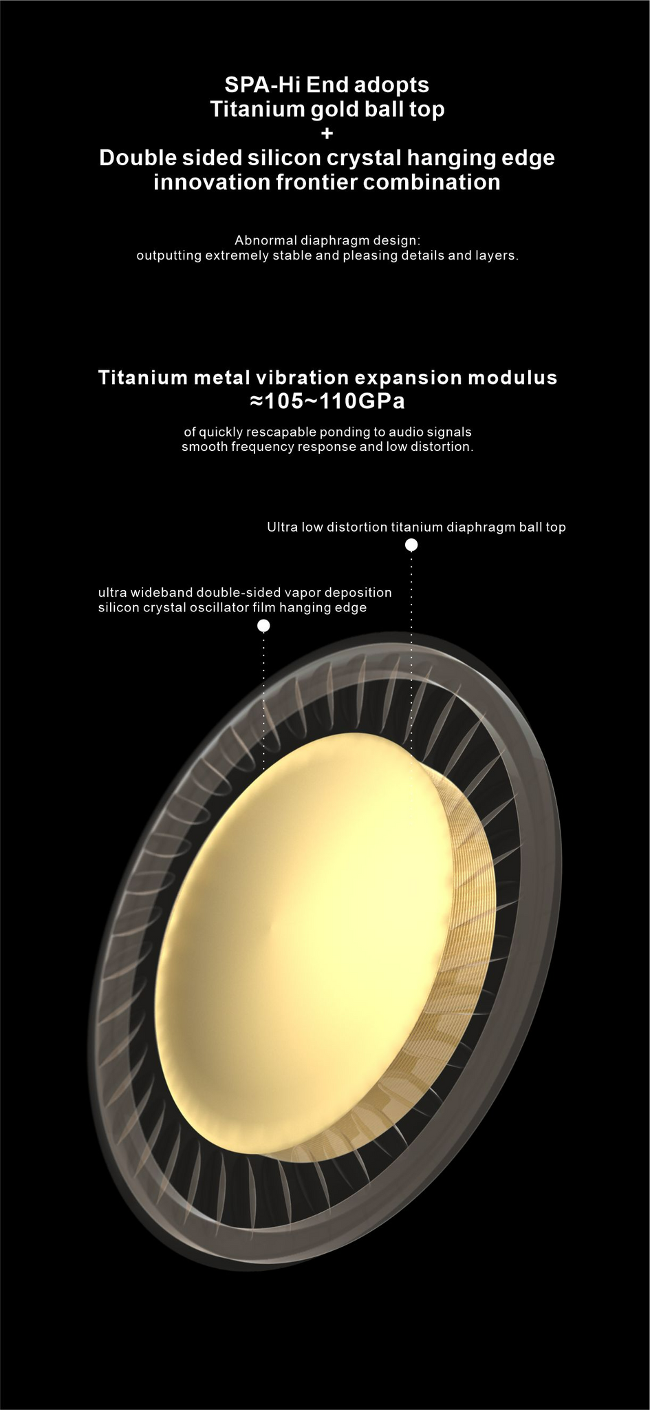 > Driver Unit: 11.4 mm Titanium Gold Ball Top + Silicon Crystal Edge Double-Sided Composite Diaphragm, Double Magnetic Circuit, Double Chamber Dynamic Coil Unit