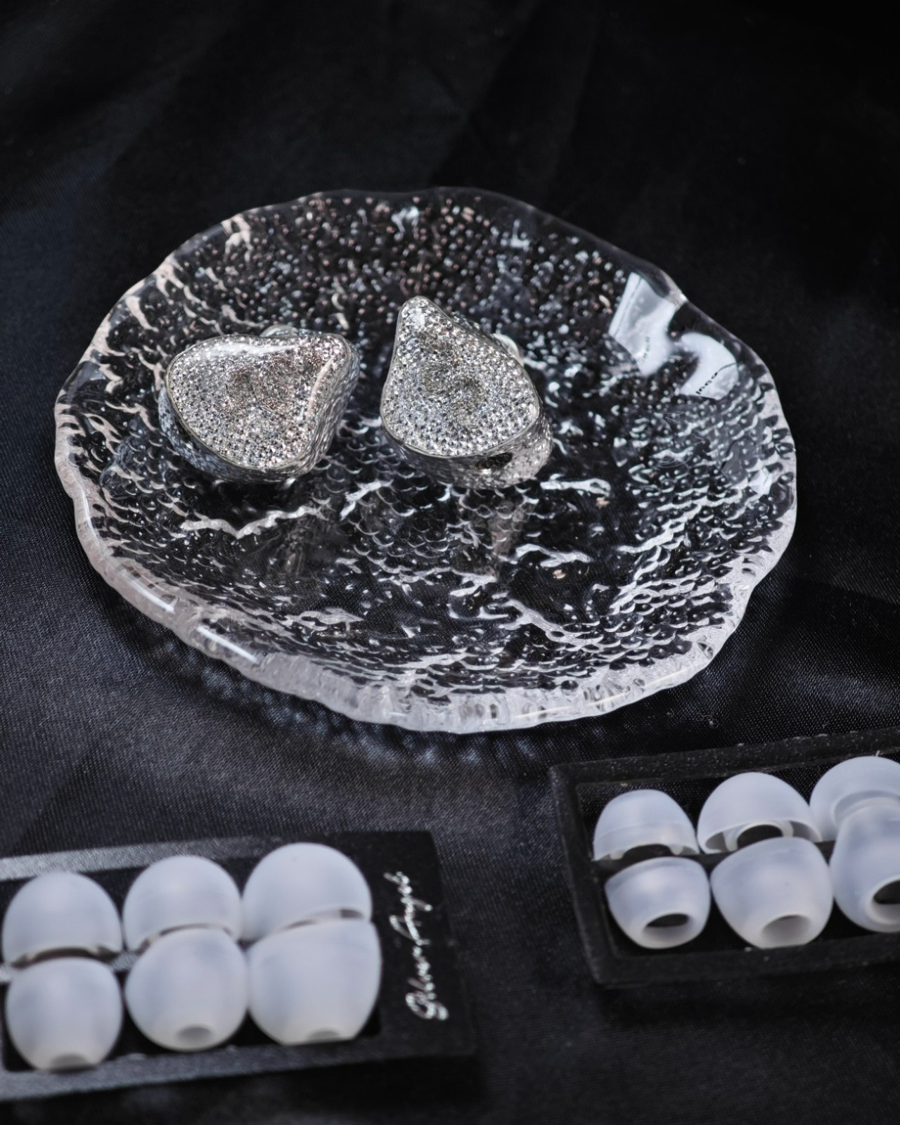 > Adopting the gene of visual minimalist aesthetics, it infuses the sanctity of tranquility into modern acoustics - the headphone cavity is as if covered with silver frost. Beneath the transparent crystal layer on the silvery-white faceplate hides a shimmering diamond-like halo, accompanied by a three-dimensional embossed silver snake with crystal eyes, symbolizing the elevation of sound from mechanical vibration to soul resonance.