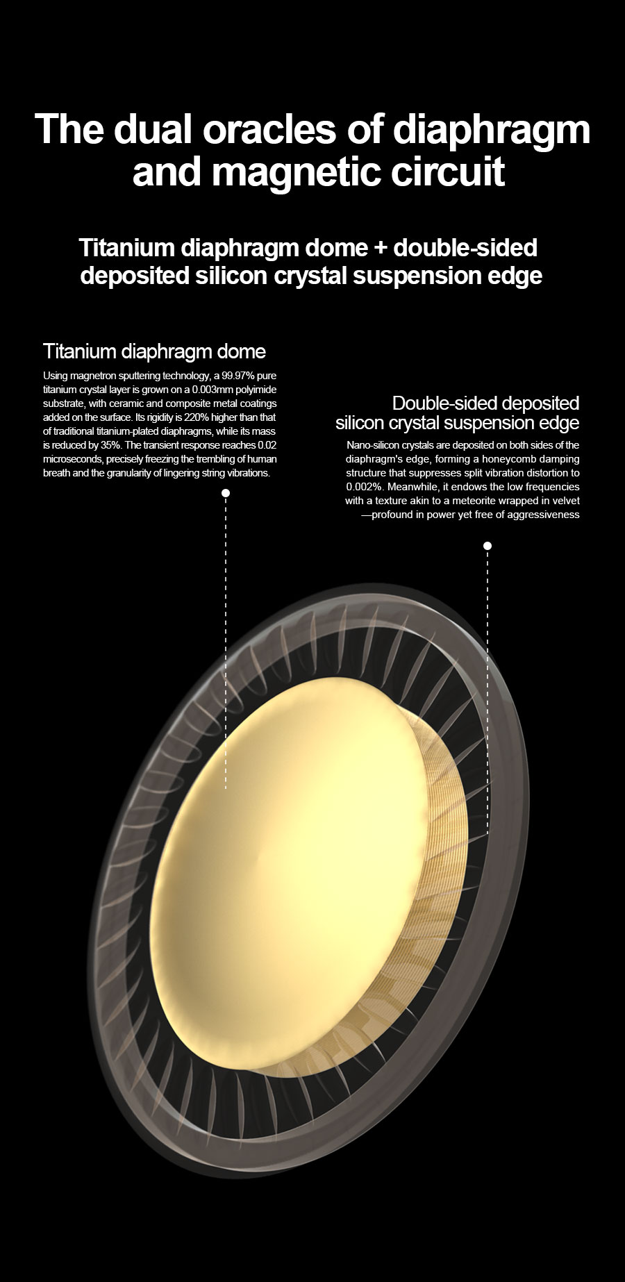 > Titanium Diaphragm Dome + Dual-Side Deposited Silicon Crystal Diaphragm Suspension Edge