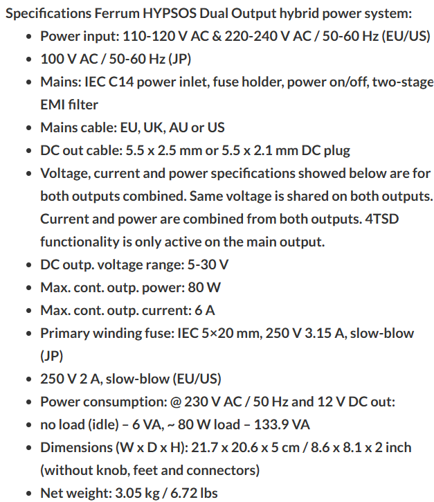 Ferrum HYPSOS, Dual Output Power Supply, Hybrid Power System, High Fidelity Power Supply, Audio Equipment Power Supply, Sweet Spot Tuning, Low Noise Power Supply, High-Performance Audio, Voltage Adjustable Power Supply.