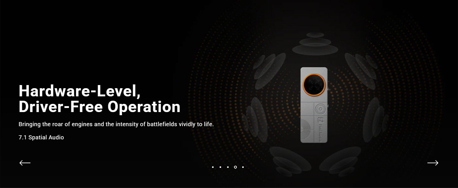 - Delivers hardware-level 7.1 spatial audio without the need for software or drivers.