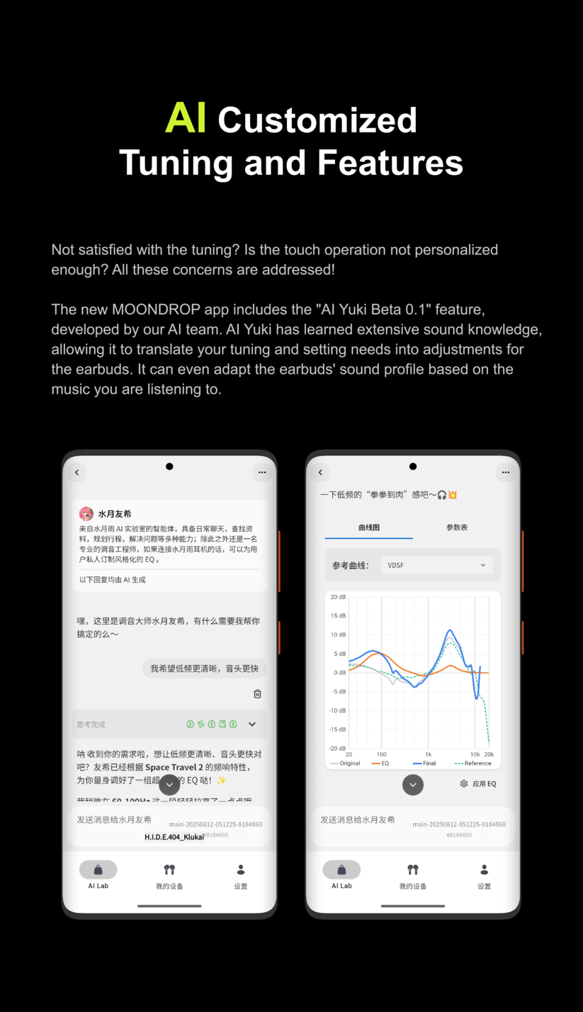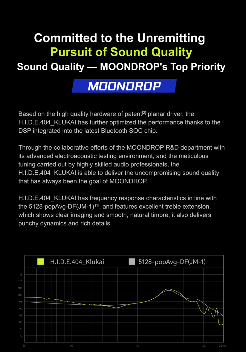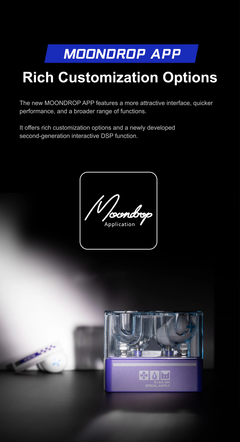 The H.I.D.E.404_Klukai earbuds also offer robust connectivity options. Supporting dual-device connections, they allow seamless switching between two devices, catering to users’ multitasking needs. Coupled with LDAC codec support, they excel in delivering high-resolution audio streaming. The bespoke MOONDROP app enhances user experience, providing rich customization options for audio preference adjustments, controls, and features such as AutoEQ for easy setup.