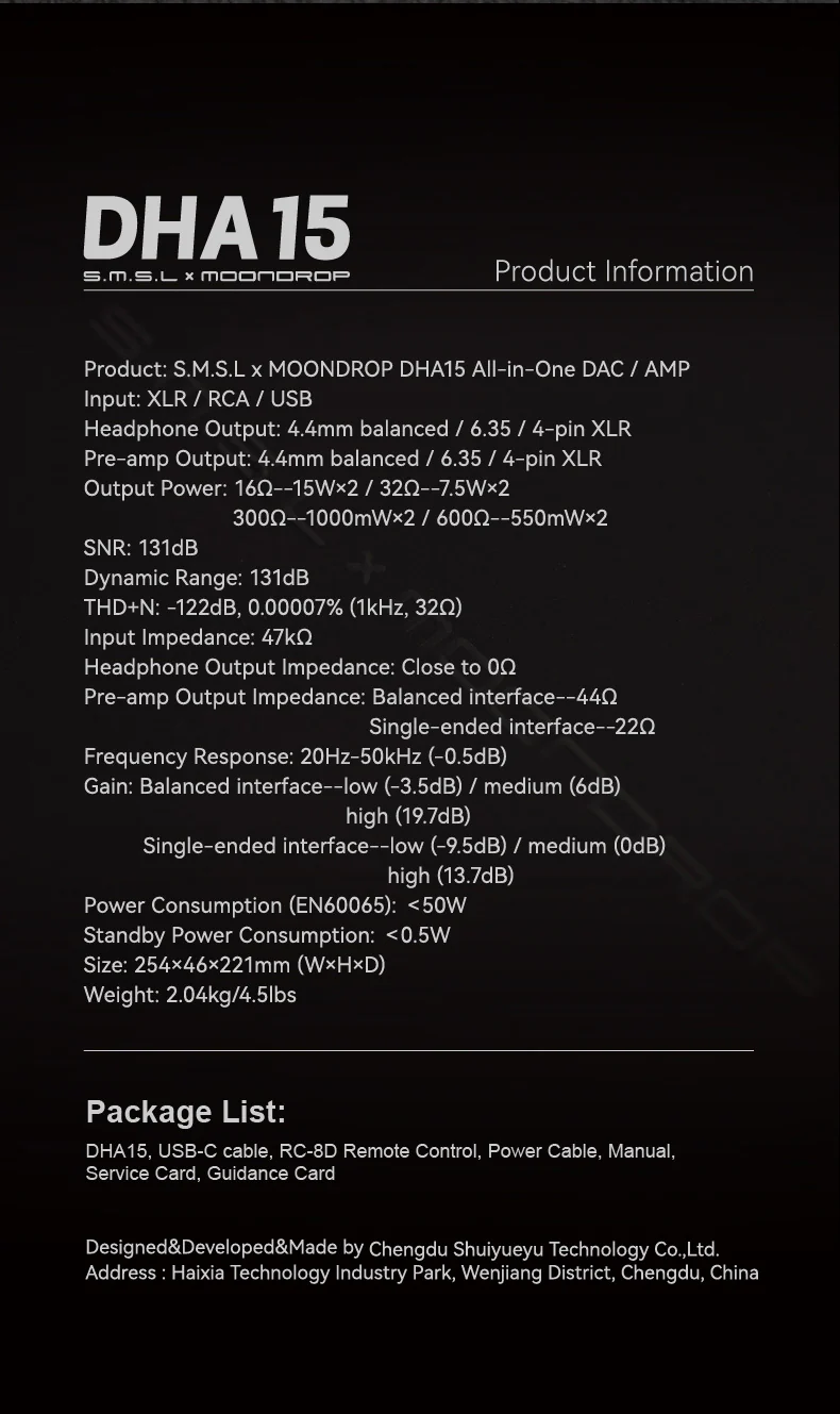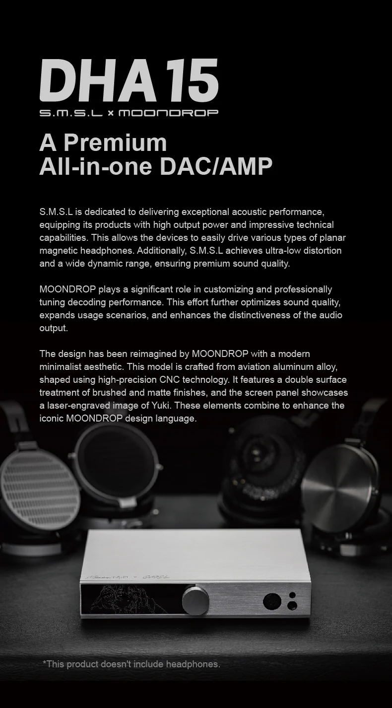 SEO KEYWORDS: DHA 15, DAC, amplifier, audio equipment, headphone amplifier, digital-to-analog converter, S.M.S.L, MOONDROP, high-fidelity audio, balanced headphone amp, desktop audio setup