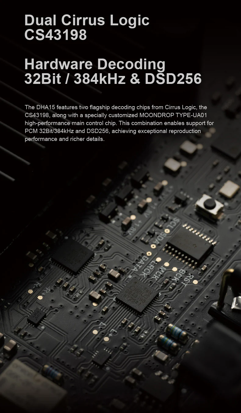 - Dual CS43198 DAC chips enable high-definition audio decoding up to 32Bit / 384kHz & DSD256.