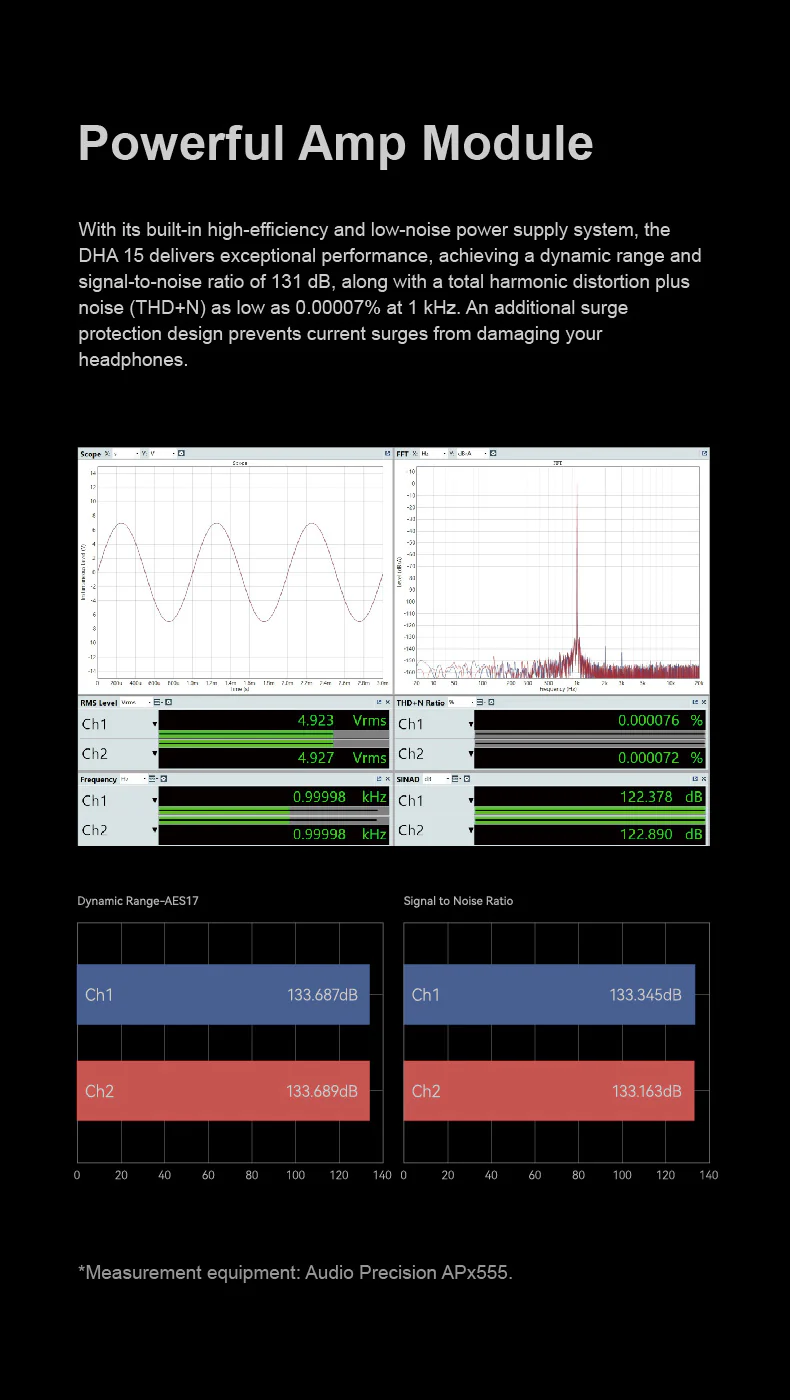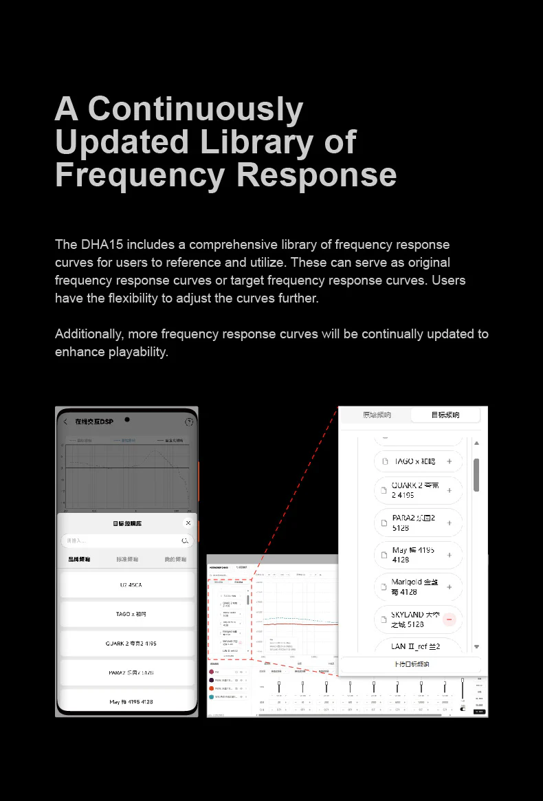 Moreover, the DHA 15 includes advanced features such as an intuitive mobile app for auto EQ tuning, which is complemented by a continually updated library of frequency response curves. Users can share tuning settings and preferences, enhancing the overall experience by collaborating with other audio enthusiasts. The device is also equipped with useful protections like surge protection, safeguarding your headphones against unexpected voltage spikes.