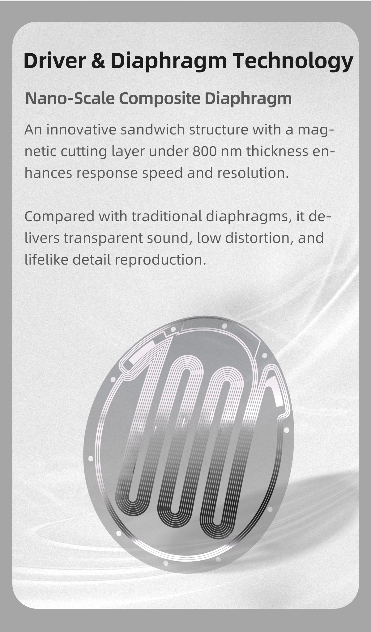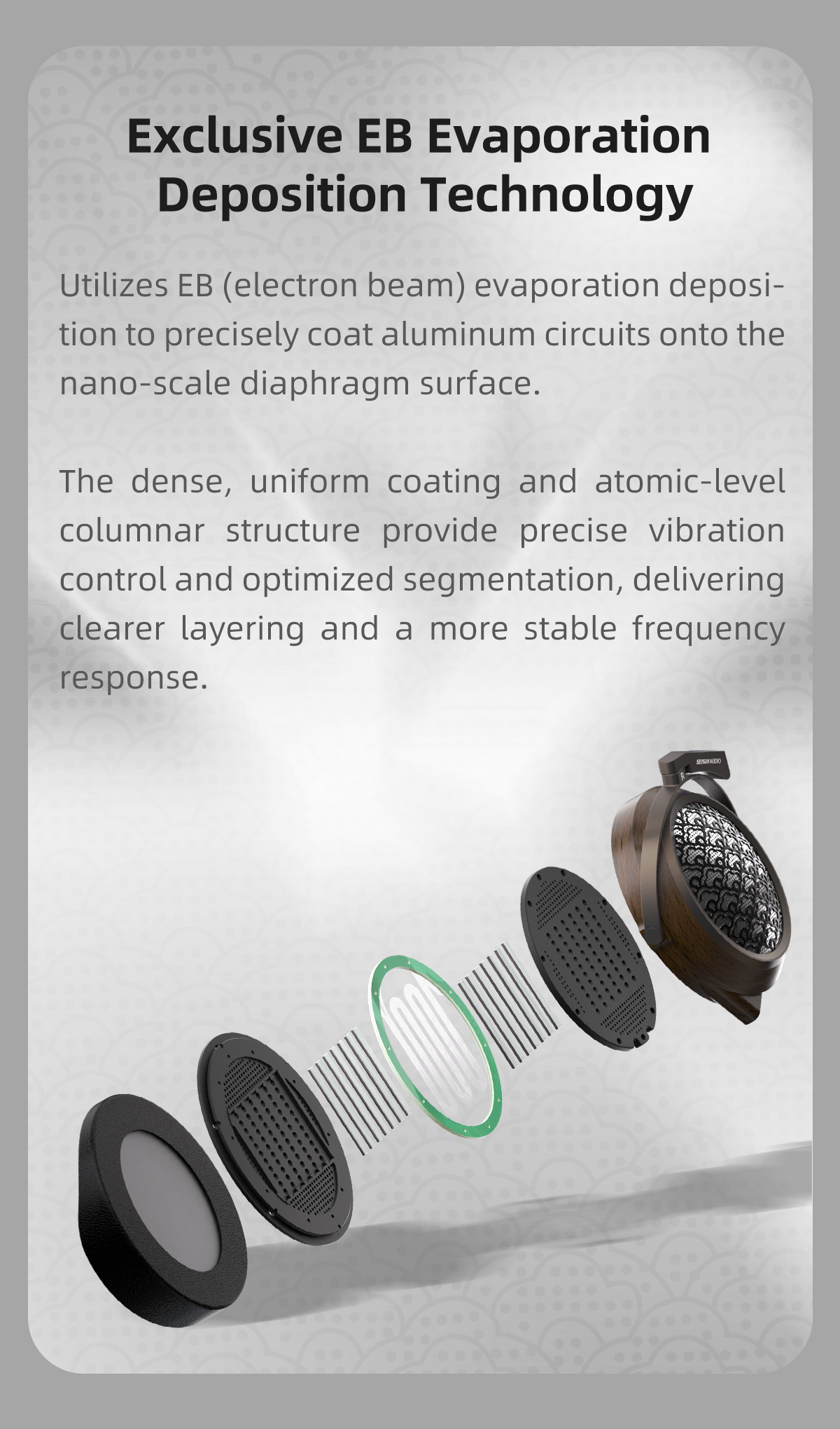 The Egret headphones showcase an innovative design with a 98*84mm planar magnetic driver that employs advanced EB evaporation deposition technology for a fast transient response, excellent resolution, and stable frequency response. The headphones are constructed with a sandwich structure that enhances clarity and precision across the audio spectrum. They also feature angled earpads crafted from skin-friendly materials, ensuring an ergonomic fit that provides effective noise isolation and comfort during extended listening sessions.