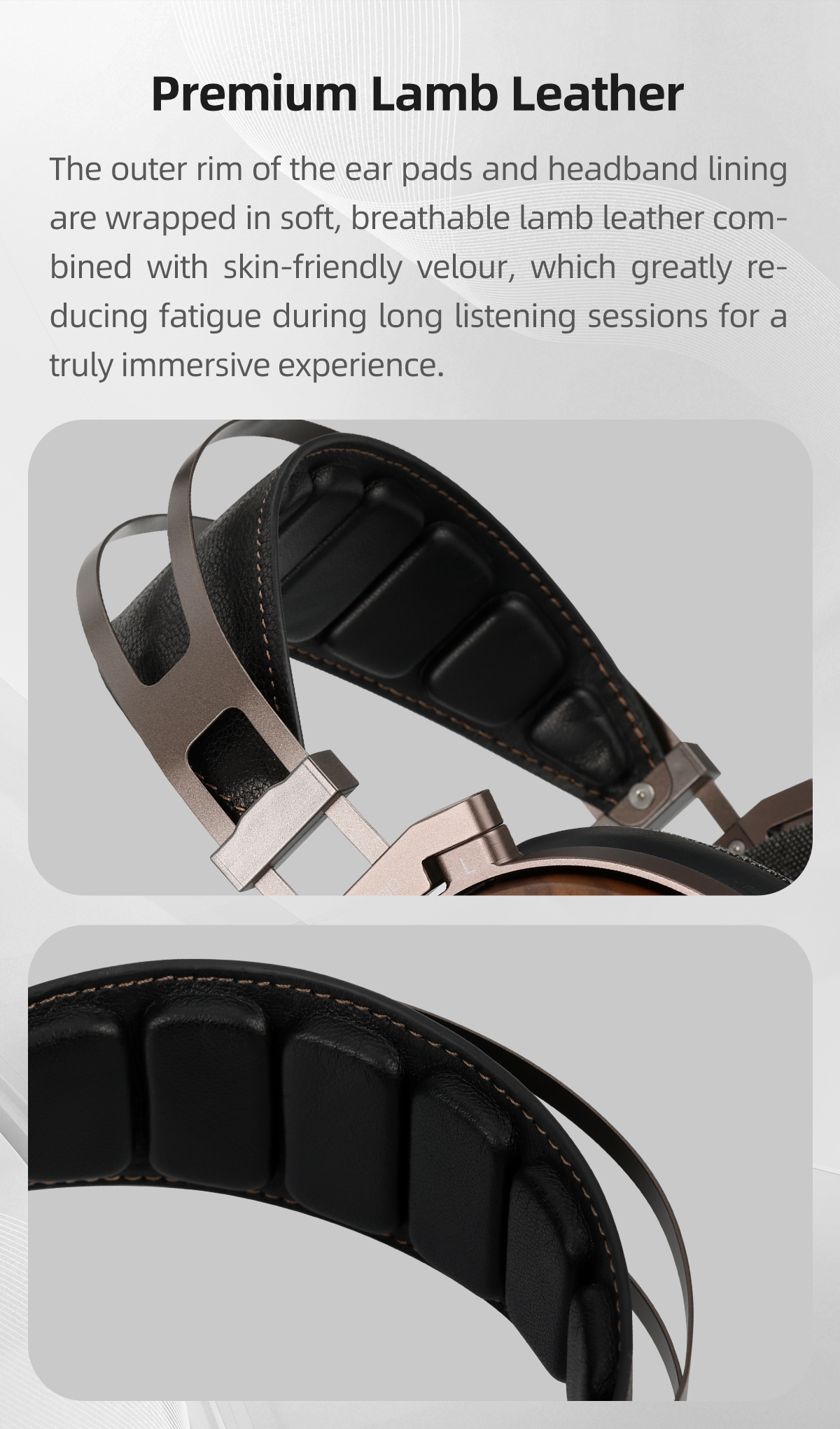 Designed with usability in mind, these headphones come with a triple composite detachable cable made from a hybrid of 30 strands of 0.05 mm Furukawa OFC, 10 strands of silver-plated copper, and 10 strands of enamelled gold-plated copper. This combination allows for enhanced resolution, depth, and a more stable presentation of sound. The earcups rotate freely to adapt to various head shapes, while the adjustable headband is engineered to conform naturally to the contours of the head for a secure fit.