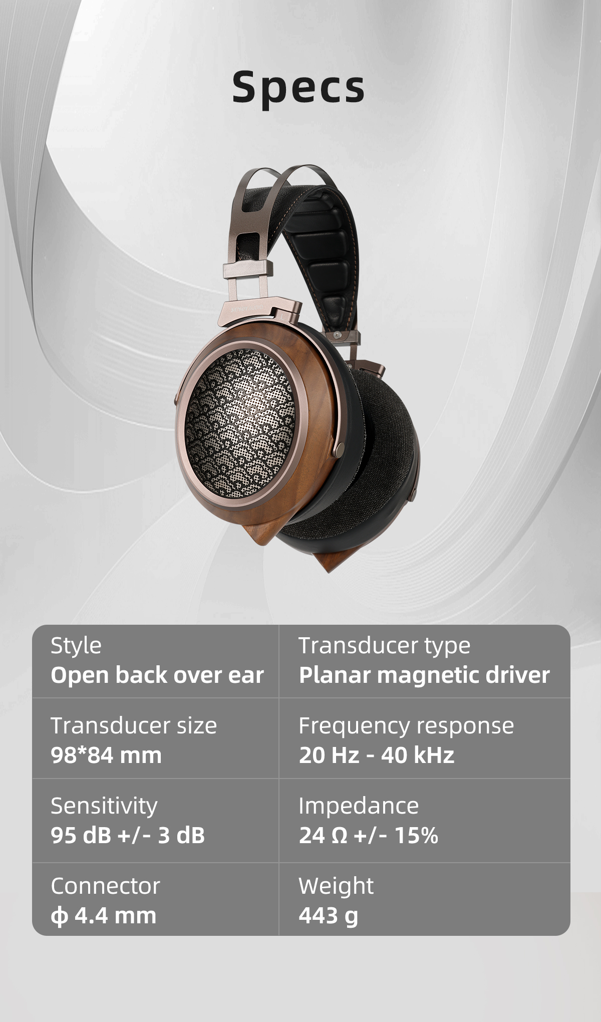 - Features a planar magnetic driver for fast transient response and precise sound.