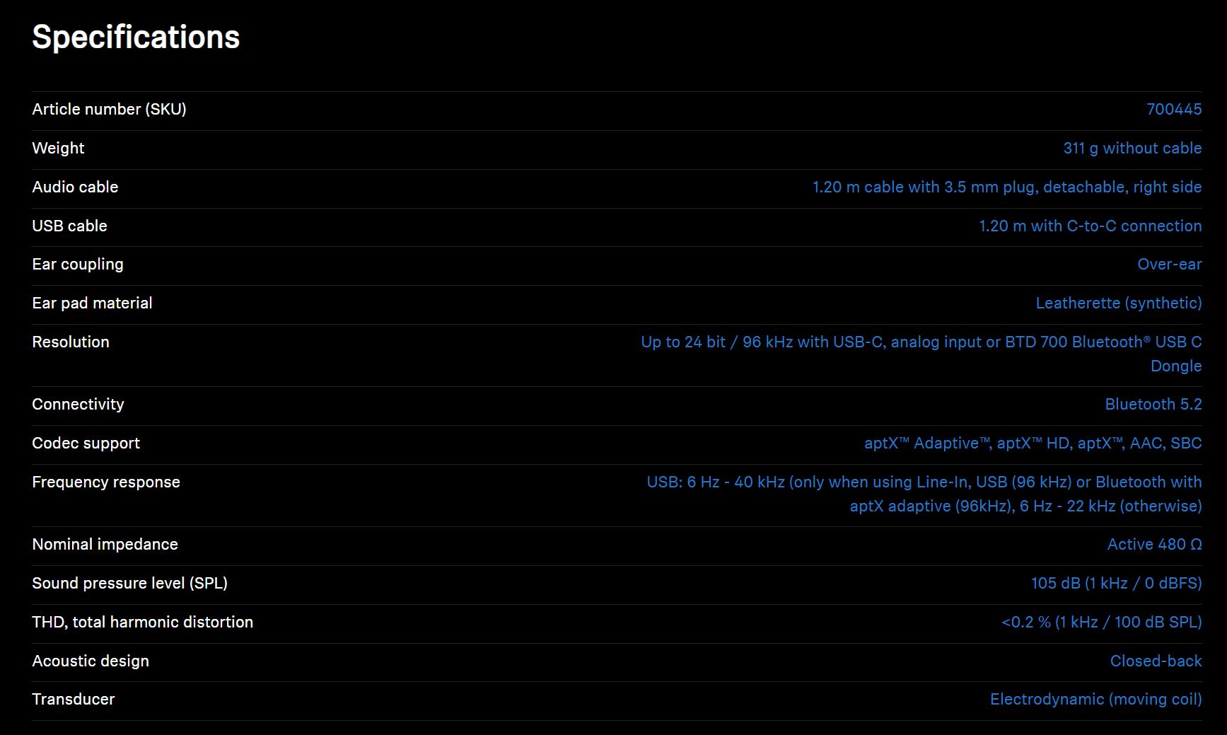 > Enjoy high resolution with support for aptX™ HD and aptX™ Adaptive, especially when paired with the included BTD 700 Bluetooth® USB C Dongle.
