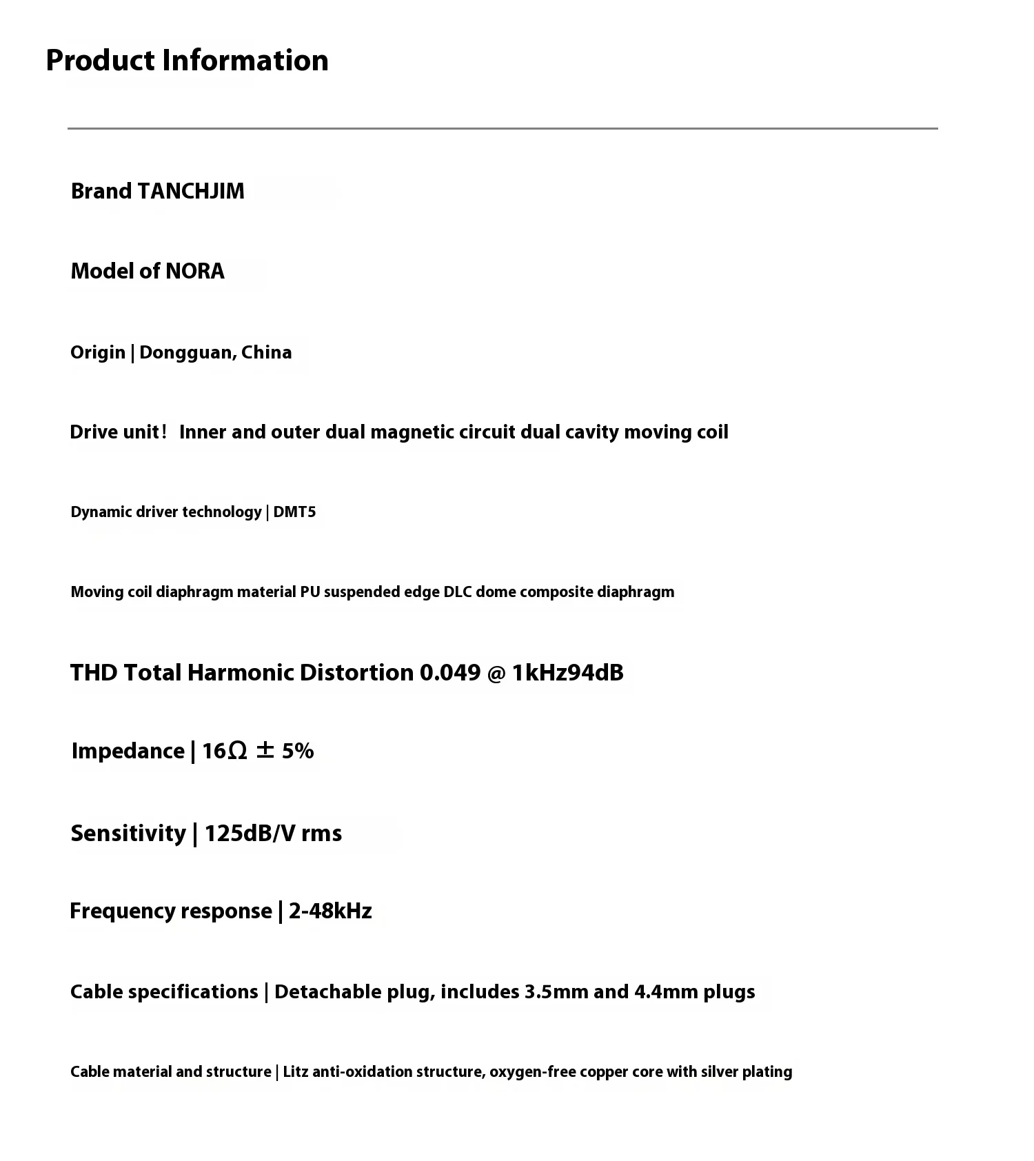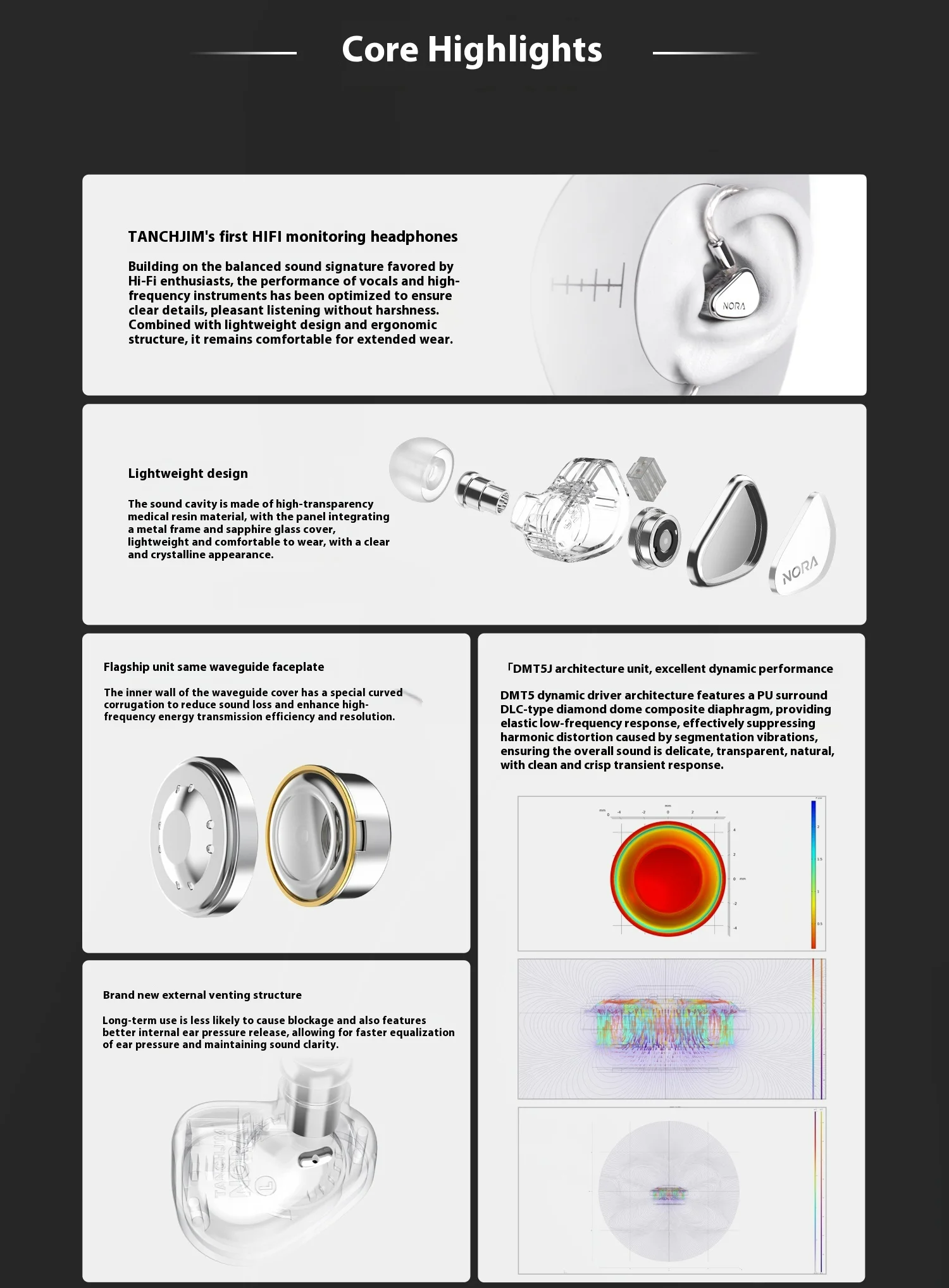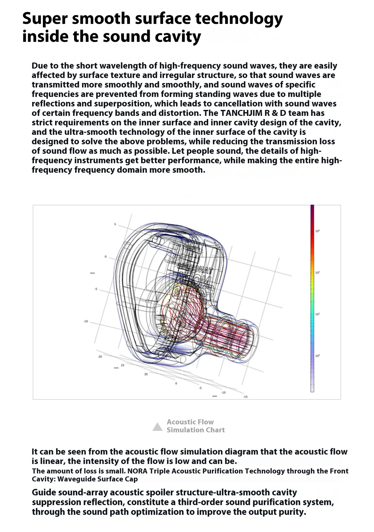 > Using FEA-based dynami correction and ear model testing, TANCHJIM optimized NORA to avoid harsh treble peaks in small ear canals - ensuring ideal comfortable sound for most listeners.