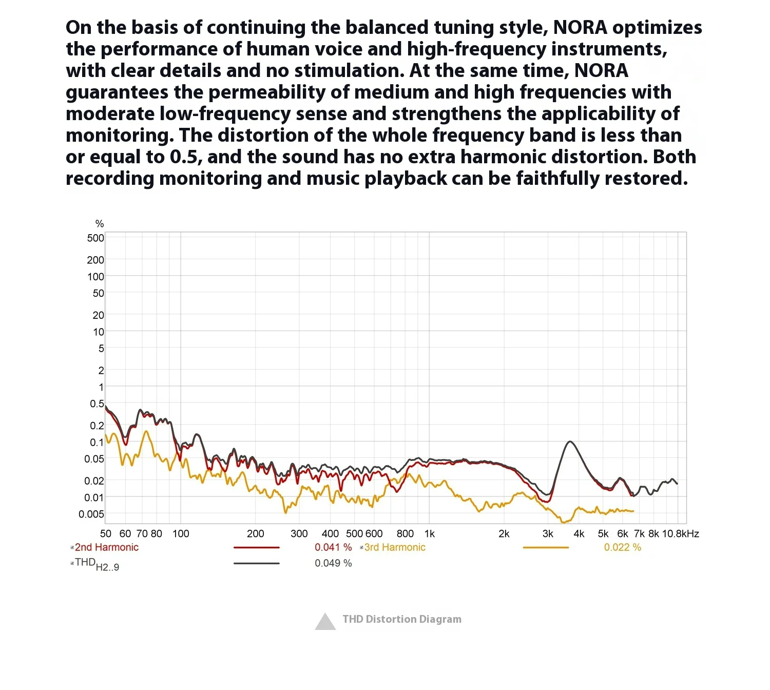 > With balanced tuning, NORA refines vocal and treble detail for smooth, clear sound. Moderate bass preserves mid-high transparency, and <0.5% distortion ensures faithful reproduction for both monitoring and music playback.