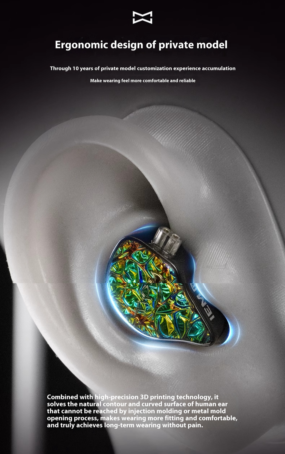 Designed specifically for comfort, the Tipsy M1 IEM undergoes over three years of research, utilizing more than 3,000 real-ear fittings to achieve an optimal fit. Weighing only 4g per side, the headphones ensure a pressure-free listening experience, ideal for musicians and audiophiles alike. The advanced 3D printing technology employed guarantees custom contours that adapt to the unique shape of each ear, enhancing wearability.