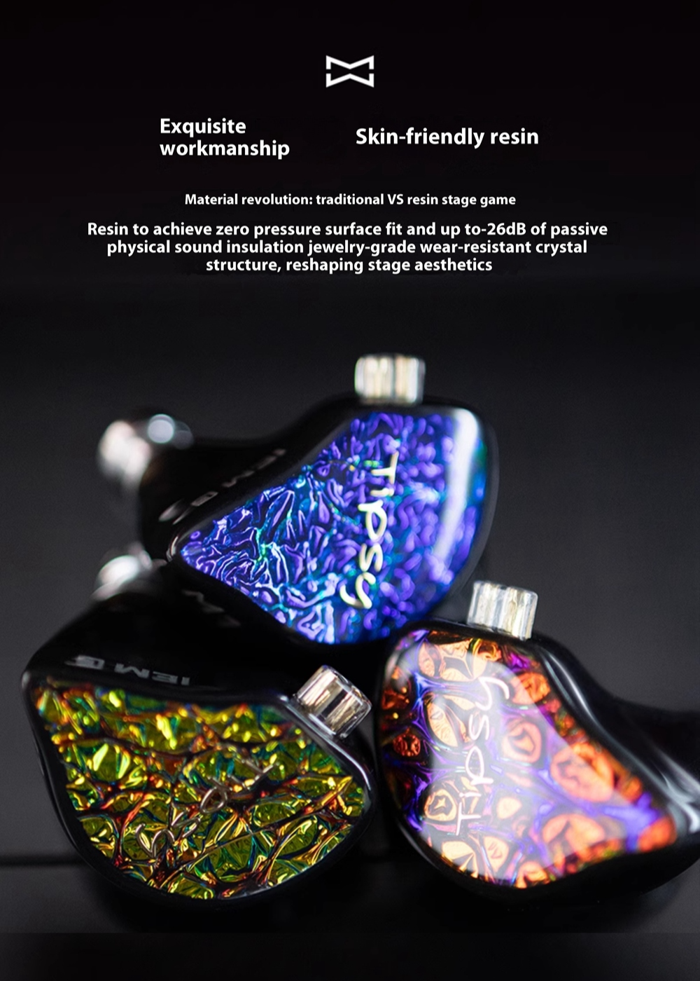 Complementing its advanced acoustic technology is the meticulously crafted high-density resin shell. Inspired by the masterpieces of Matisse and Van Gogh, the M1 IEM reflects a harmonious marriage of color and form, shifting its visual appeal depending on the light and angle. This artistic design enriches the overall audio experience, making each pair distinct.
