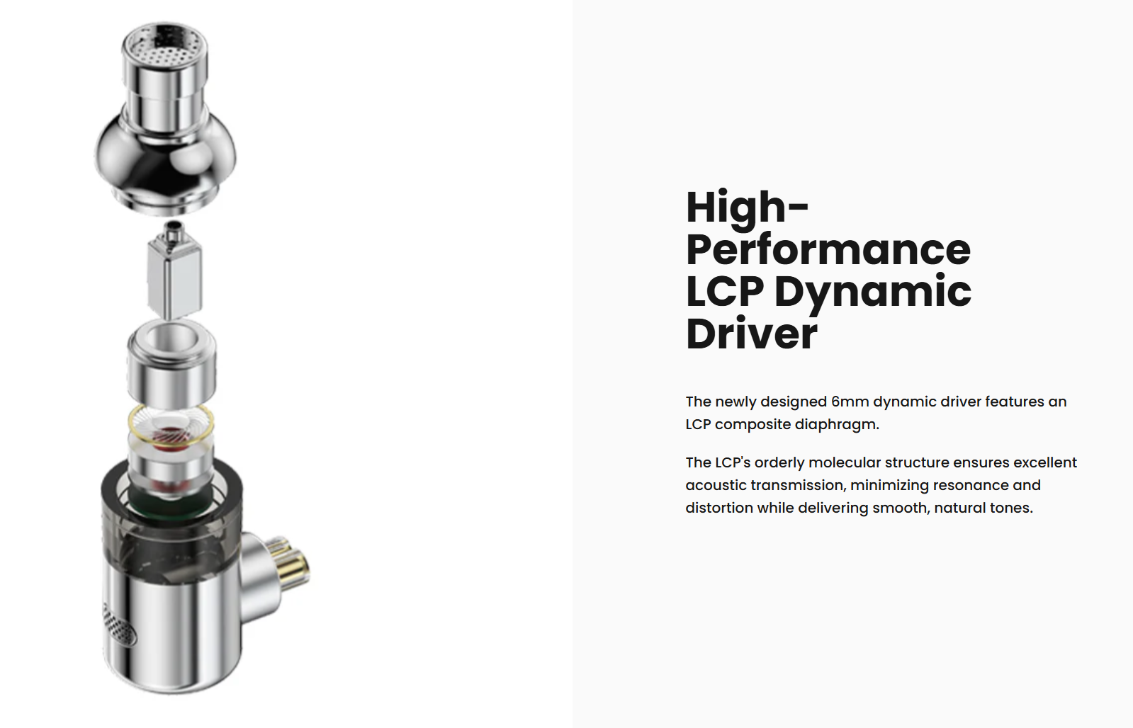 Unit Configuration: 6mm high-performance dynamic driver unit + 1 balanced armature driver