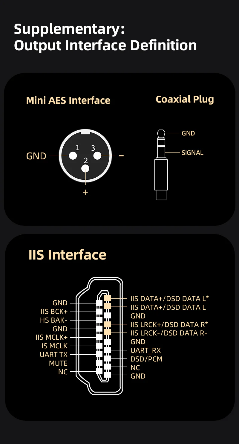 > Audio Outputs: USB DAC, Coaxial, Optical, AES, HDMI, I²S