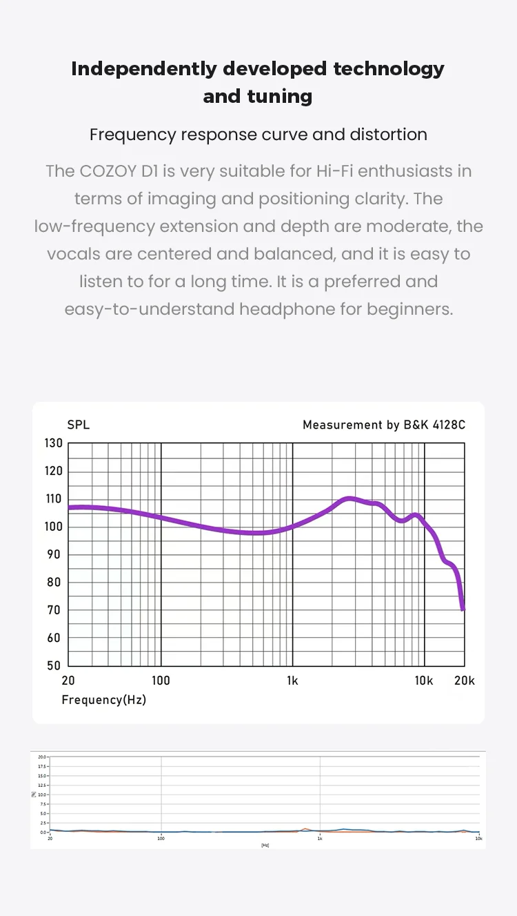 > The COZOY D1 is very suitable for Hi-Fi enthusiasts in terms of imaging and positioning clarity. The low-frequency extension and depth are moderate, the vocals are centered and balanced, and it is easy to listen to for a long time. It is a preferred and easy-to-understand headphone for beginners.