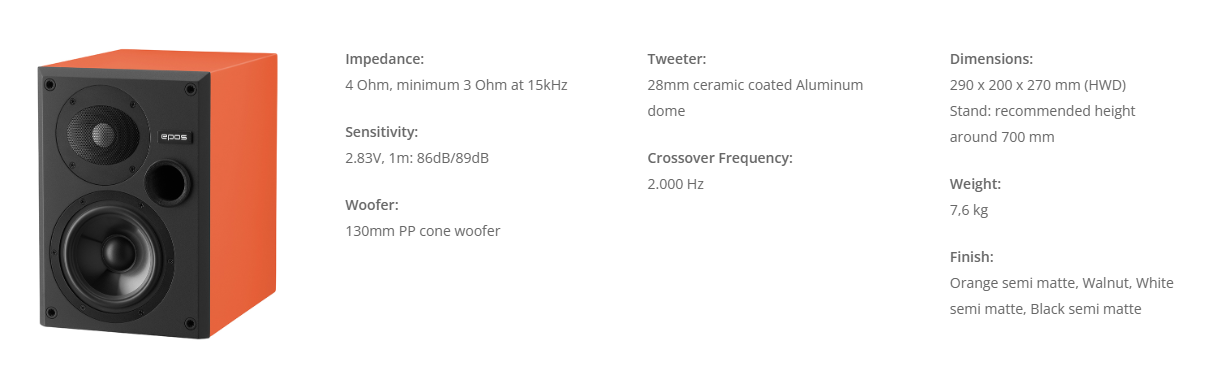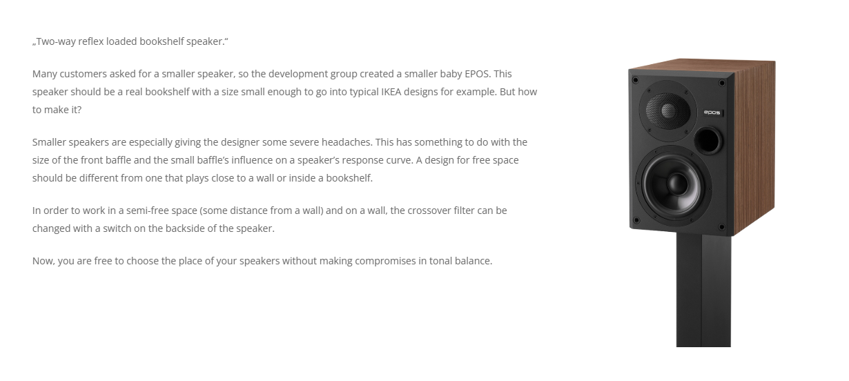 SEO KEYWORDS: EPOS ES-7N, bookshelf speaker, two-way reflex loaded speaker, compact speaker, high-fidelity audio, adjustable crossover, stereo imaging, MDF cabinet speaker.