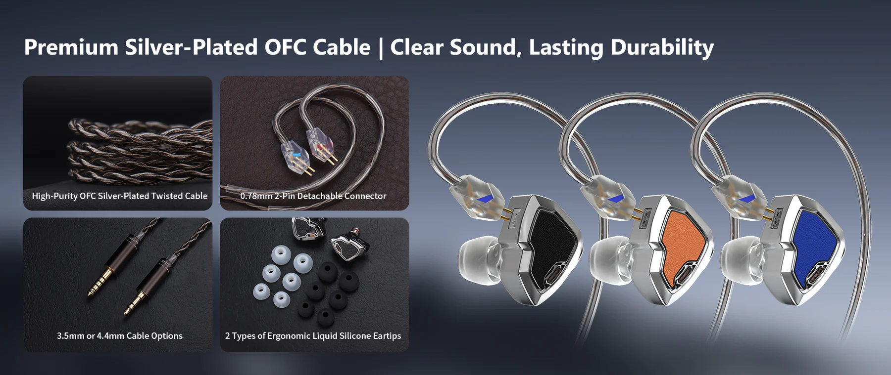 > Custom-tuned for crystal-clear treble and smooth vocals, the Silvercore BA™ delivers airy, detailed highs—like a silver meteor streaking through your soul. It provides wide-range precision with minimal distortion and no fatigue.
