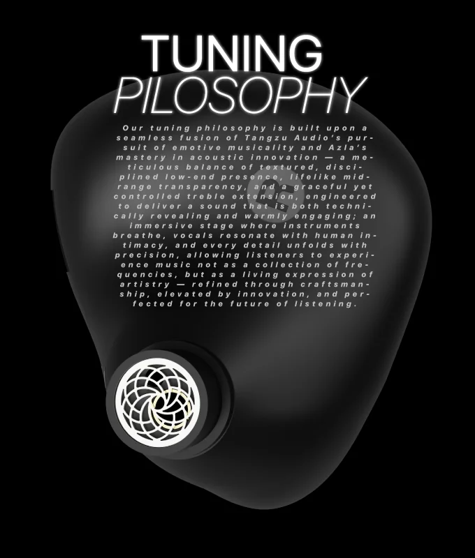 > Our tuning philosophy is built upon the seamless integration of Tang Dynasty's pursuit of emotional musicality and AZLA's exquisite acoustic innovation—rich and controlled low frequencies, transparent and natural mid frequencies, and elegant and well-controlled high frequencies. All of this is meticulously designed to deliver a sound that precisely reveals details while remaining warm and moving; constructing an immersive soundstage that allows instruments to breathe freely, vocals to resonate with genuine emotion, and every detail to be precisely presented. It brings users a perception beyond frequency, allowing them to experience the essence of music as a vibrant art form — meticulously crafted and innovatively elevated, dedicated to creating the ultimate auditory experience.