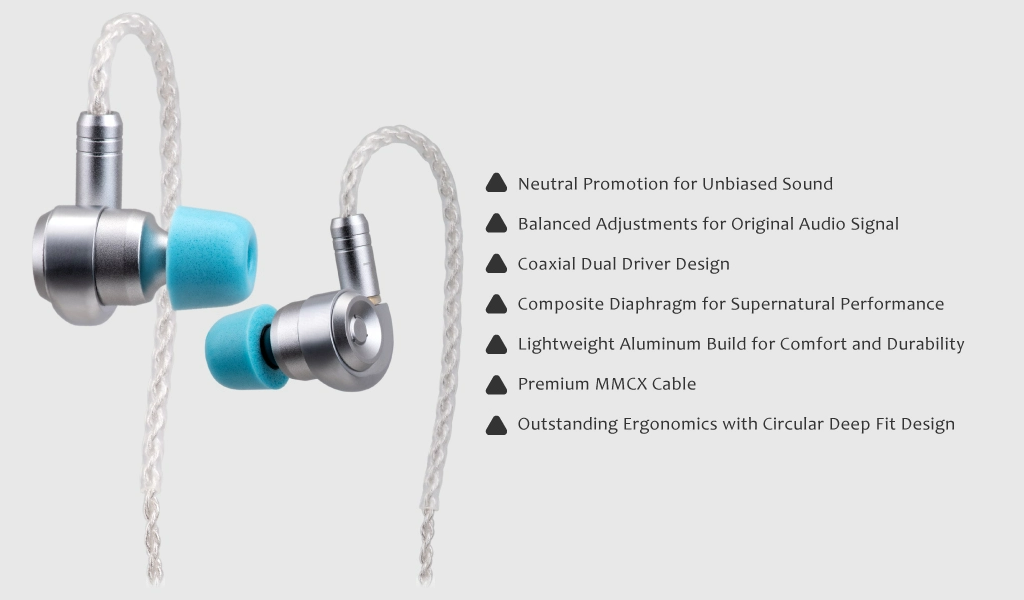 > The coaxial design helps ensure that sounds of different frequencies are in sync over time, with electronic crossover directing high frequencies to the 6mm driver and low frequencies to the 10mm driver. This reduces potential phase issues, providing a more accurate and natural sound.