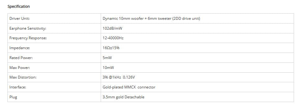 > Driver Unit: Dynamic 10mm woofer + 6mm tweeter (2DD drive unit)